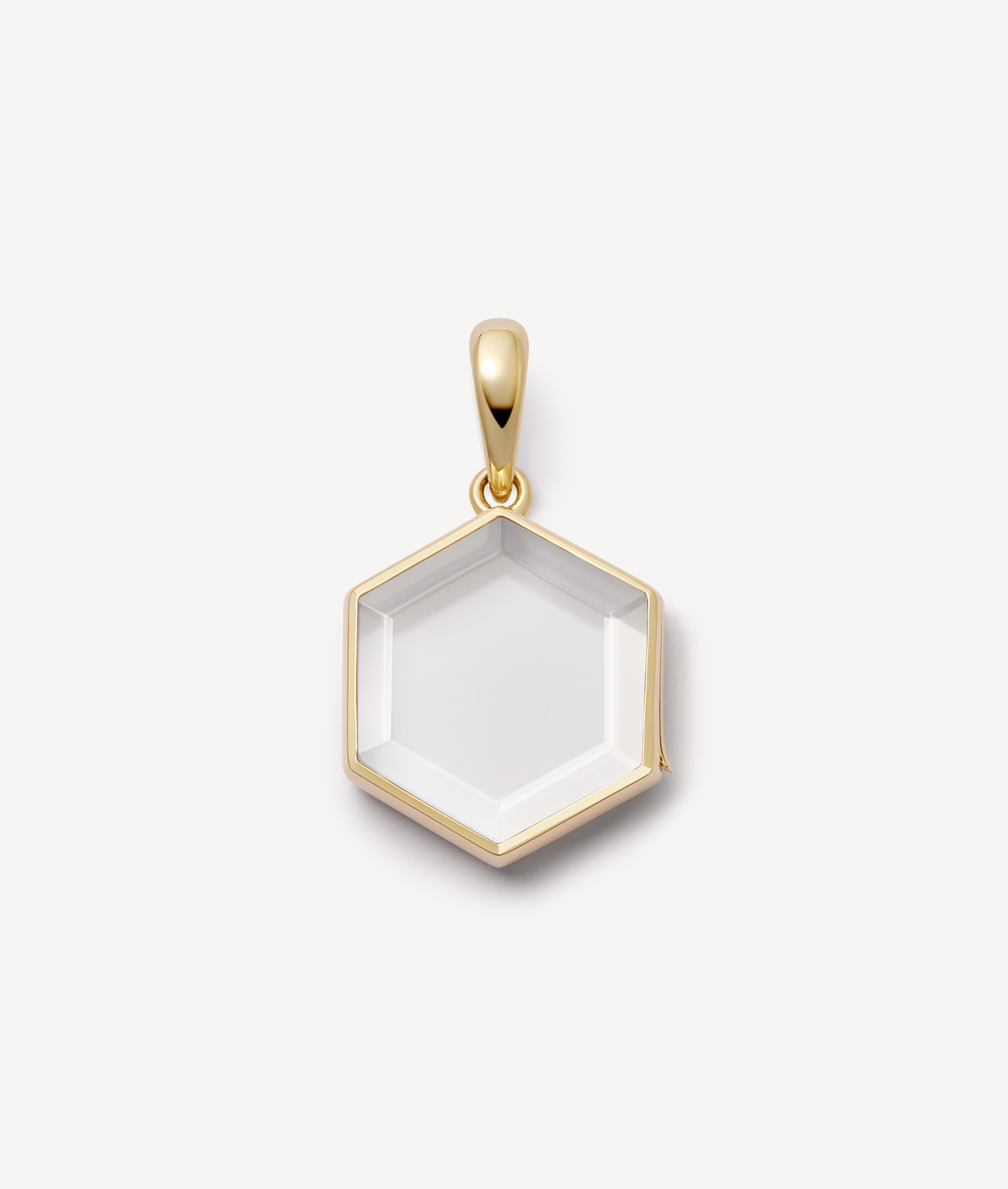 Signature Honeycomb Locket pendant crafted in 14k yellow gold set with a white sapphire flanders crystal. Handmade. Inspired by nature’s finest feat of engineering, our Honeycomb Locket represents harmony and strength. The simplicity of its hexagonal shape is easily layered and stacked with your collection of jewellery. Open it up and personalise with the nectar of your sweetest memories. We love it styled on one of our Sphere Necklace paired with your favourite shirt.