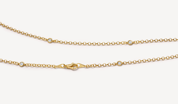 Crafted in 18k solid yellow gold and set with ten evenly spaced Top Wesselton VVS diamonds, this 18 inch necklace is as effortless as it is elegant. Handcrafted in Italy, it’s designed to move with you—layered, solo, dressed up or down. The kind of piece that quietly transforms a jewellery collection, it pairs beautifully with our Signature and Heirloom lockets, adding a touch of light to every day. An investment in forever, but yours to enjoy first.