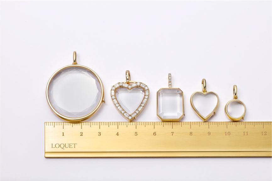 Our lockets are as varied as the stories they tell, coming in diverse shapes and sizes, the art of personalisation lies in your hands. How many of our handcrafted charms you can tuck inside your locket depends on the alchemy of your selection. Our most expansive locket is a spacious piece that can cradle up to 12 charms, while our petite version is a delicate nest for 1 to 2 of your chosen treasures.