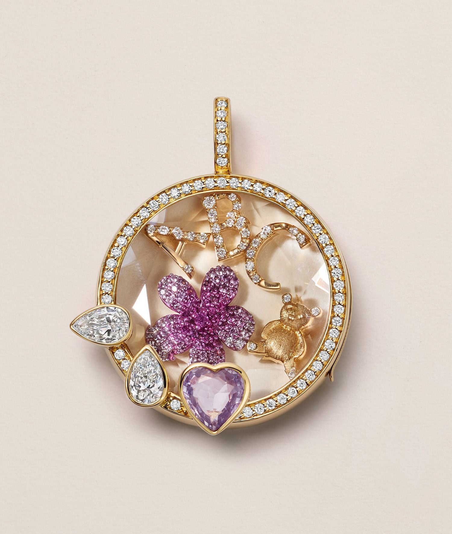 Discover the charm of customisation with our unique range of lockets. Available in an array of shapes and sizes, each locket is meticulously crafted from solid gold and set with the clearest sapphire crystal—a window to your world of wonders.