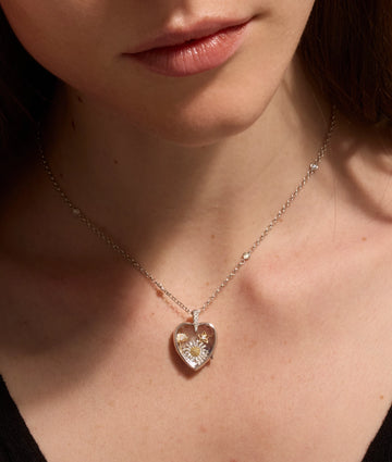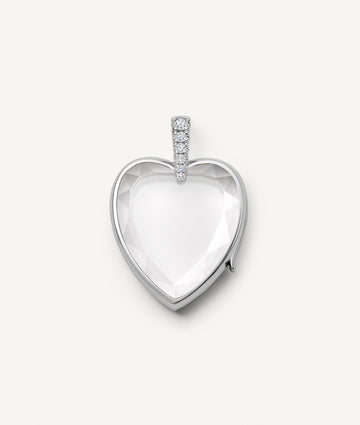 Where sentiment finds its most sophisticated expression, our personalised Amate Heart locket, exquisitely handcrafted in 18k solid white gold with pavé diamond bail, captures the essence of understated luxury. Designed to cradle your most treasured memories, it becomes part of your narrative, worn as a daily talisman, elegantly layered, or cherished as your most intimate piece. It deepens in meaning with every charm addition, whilst our signature clasp provides flawless security, and the faceted crystal allows your story to shine. Your locket becomes a daily reminder of what makes life truly beautiful.
