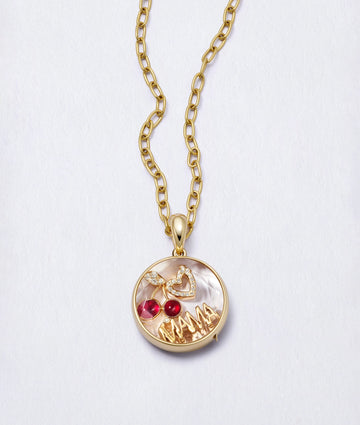For sweetness in life's moments. For the one you'd pick every time. A pair of cherries ripe with meaning, handcrafted in 18k solid gold with deep red garnets, it celebrates the woman who cherishes every experience and knows that life's greatest treasures are found in fleeting moments of pure joy and connection. Designed to fit inside all our lockets.