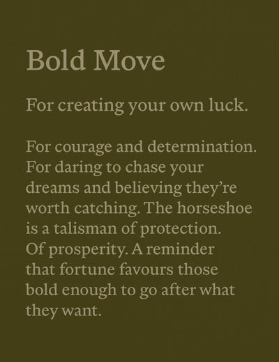 For courage and determination. For daring to chase your dreams and believing they're worth catching. The horseshoe is a talisman of protection. Of prosperity. A reminder that fortune favours those bold enough to go after what they want. Handcrafted in 18k solid gold, designed to fit inside all our lockets.
