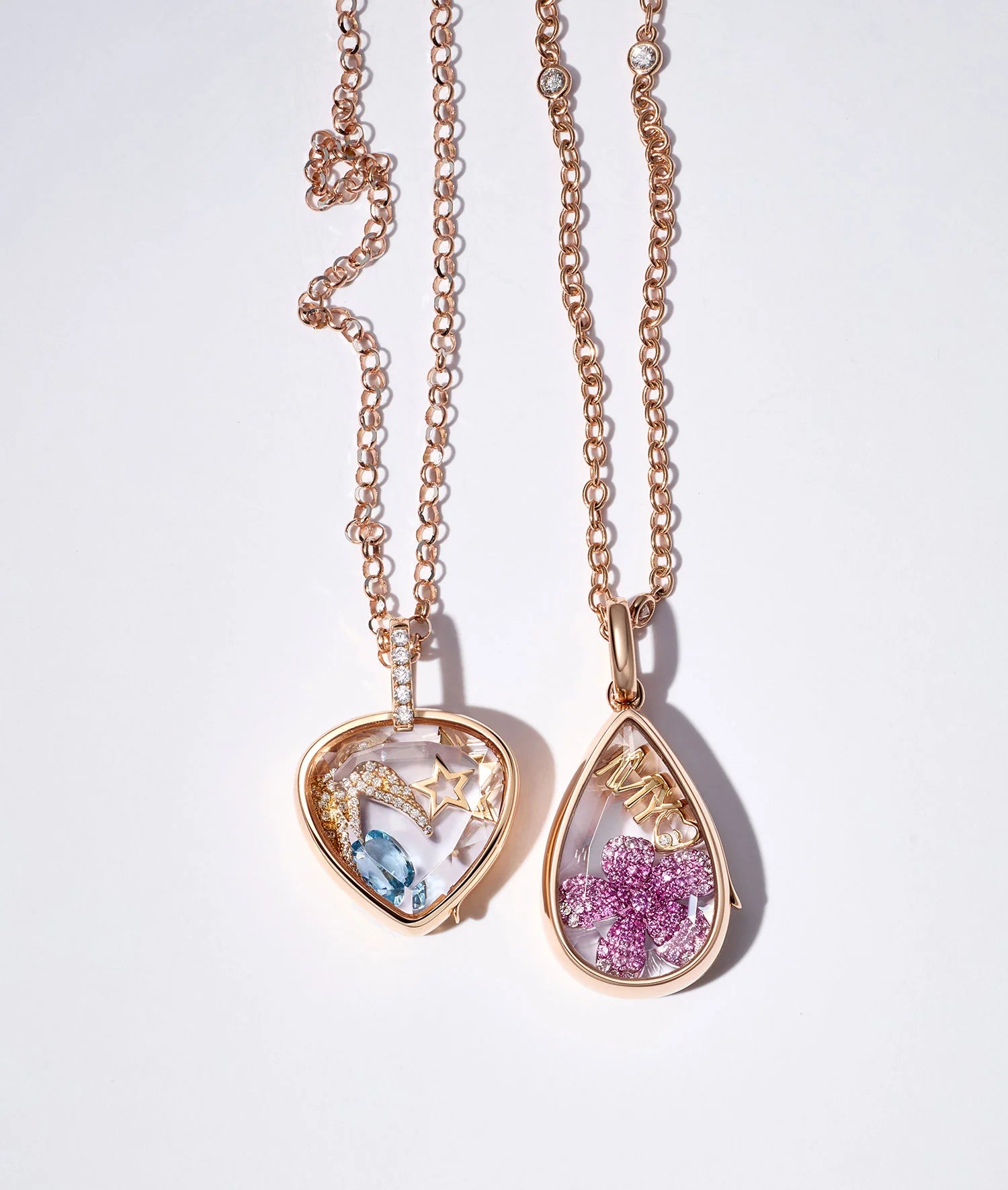 Discover the charm of customisation with our unique range of lockets. Available in an array of shapes and sizes, each locket is meticulously crafted from solid gold and set with the clearest sapphire crystal—a window to your world of wonders.