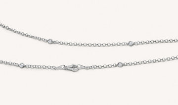 18" is crafted in 18k white gold with eight individually set Top Wesselton VVS diamonds. Made in Italy. The Diamond Chain is an investment piece that effortlessly mixes with all your favourite jewellery and is a seamless addition to any collection for future generations, but you can enjoy it first. Crafted in 18k yellow gold, the 18" style sparkles with eight individually set F VSS diamonds. A versatile chain that goes well with our Signature and Heirloom lockets.